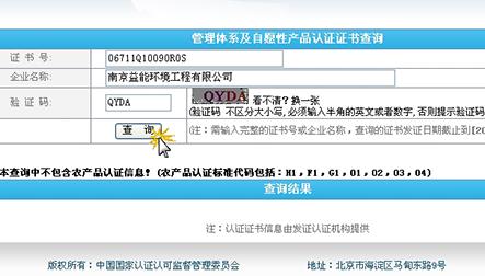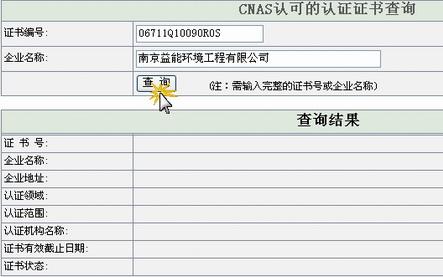 4、將完整的“證書編號”或“企業(yè)名稱”輸入信息欄,點擊“查詢”;